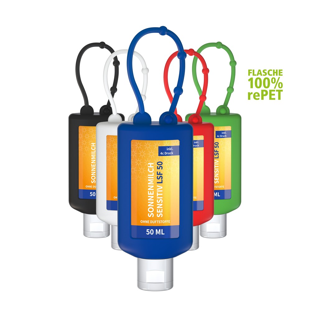 Sonnenmilch LSF 50 (sens.), 50 ml Bumper (rot), Body Label (R-PET)