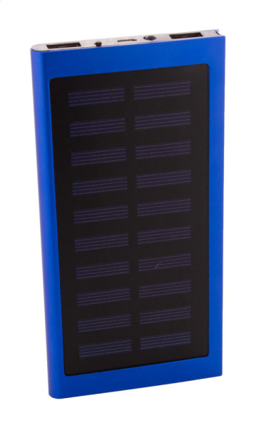 Powerbank im Gehäuse aus recyceltem Aluminium mit integriertem Solarladegerät und 4000-mAh-Akku. Mit 2 USB- und 1 USB-C-Ladeanschlüssen. USB-C-Eingangsport. Inklusive USB-Ladekabel.