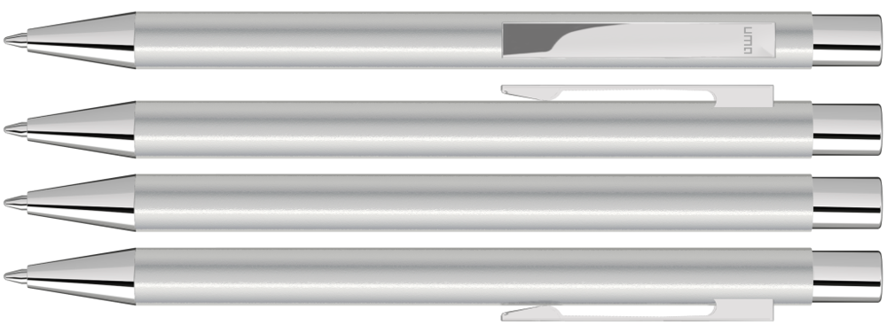 Metall-Druckkugelschreiber mit mattem Gehäuse. Metallclip, Metallspitze und Drücker silber glänzend. mehr
