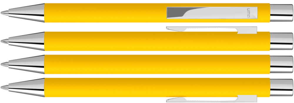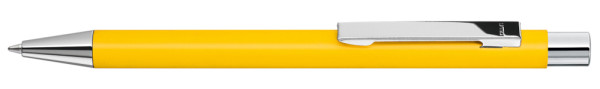 Metall-Druckkugelschreiber mit mattem Gehäuse. Metallclip, Metallspitze und Drücker silber glänzend. mehr