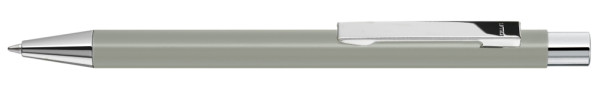 Metall-Druckkugelschreiber mit mattem Gehäuse. Metallclip, Metallspitze und Drücker silber glänzend. mehr