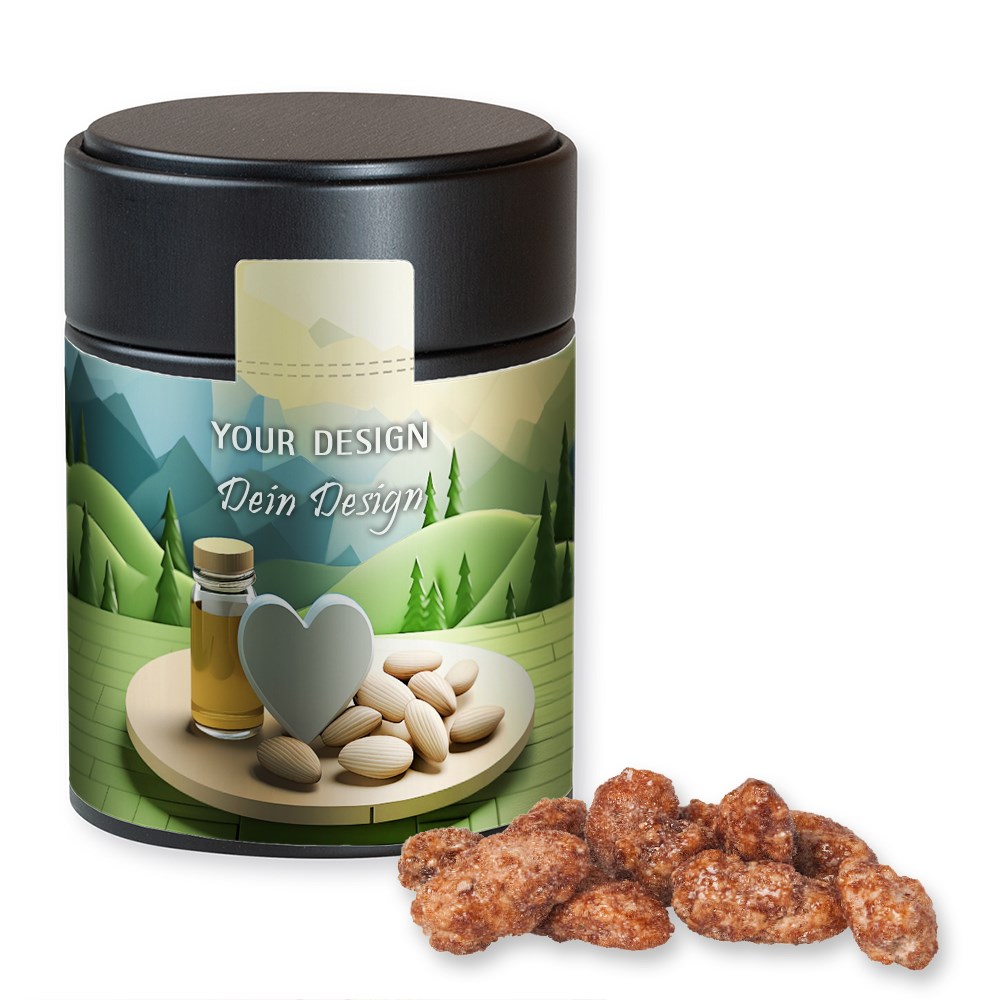 Feuergebrannte Mandeln, ca. 100g, Metalldose Midi schwarz