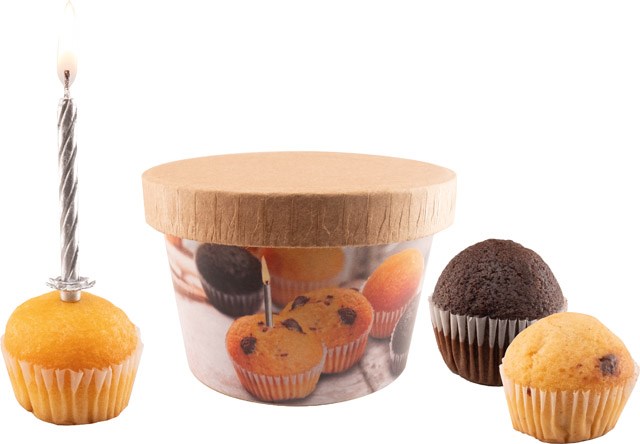 Inhalt: Muffin sortiert (14 g), silberner Kerze mit Halter