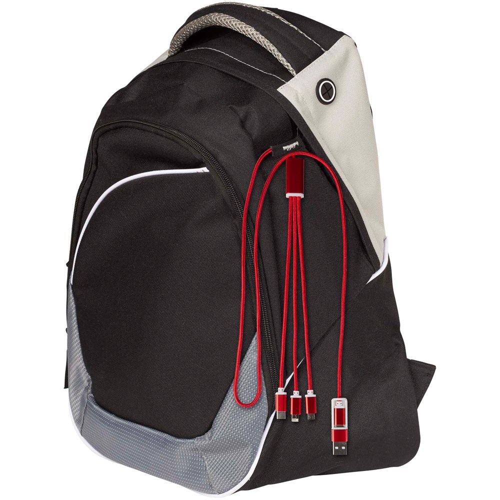 Dieses Kabel verfügt über einen USB-A- und einen Typ-C-Eingangsanschluss in Kombination mit einem Typ-C-, einem Micro-USB- und einem Lightning/Micro-USB-Kombi-Ausgangsanschluss. Diese Anschlüsse ermöglichen das Laden der meisten iOS/Android-Smartphones, Kameras, Powerbanks und Ohrhörer. Das Kabel ist 100 cm lang und besteht aus recyceltem Aluminium und RPET.