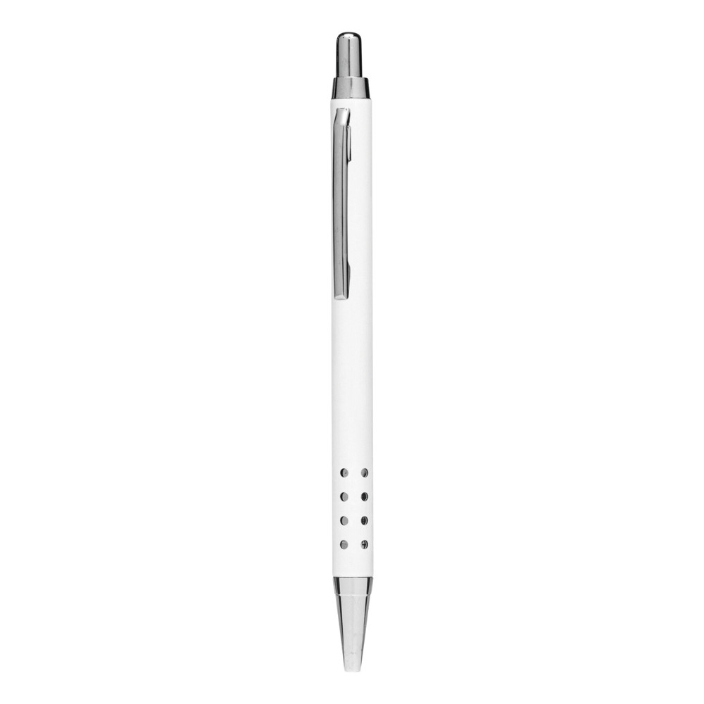 Aluminium-Kugelschreiber BUKAREST: mit Aluminium-Schaft, Griffzone mit Loch-Design, Druckmechanismus, Großraummine, blauschreibend