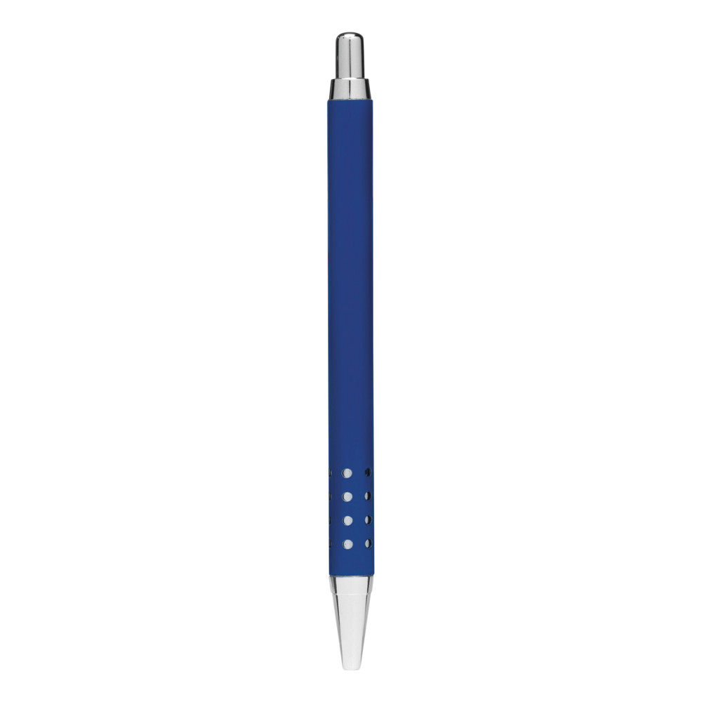 Aluminium-Kugelschreiber BUKAREST: mit Aluminium-Schaft, Griffzone mit Loch-Design, Druckmechanismus, Großraummine, blauschreibend