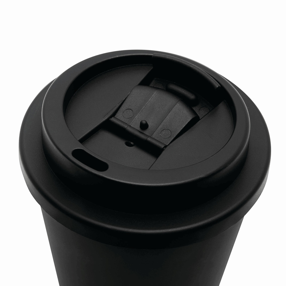 Isolierbecher RE-USE, doppelwandig: aus Kunststoff, Deckel mit sicherem Schraubverschluss, Silikon-Dichtring und integrierter Trinköffnung zum Aufklappen, Füllmenge ca. 300 ml, hält ca. 2 Stunden warm und bis zu 4 Stunden kalt
