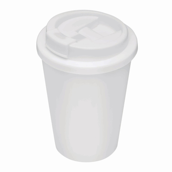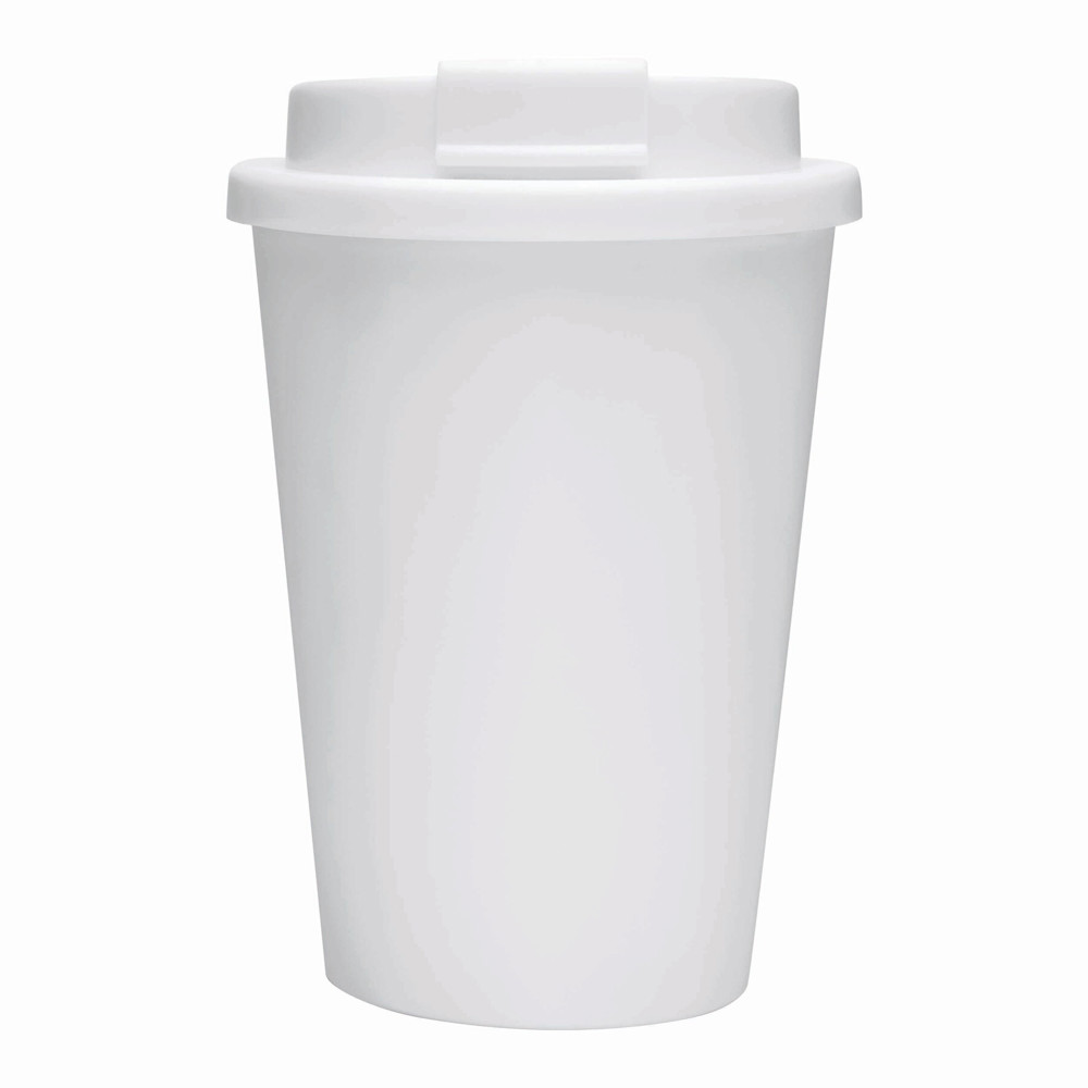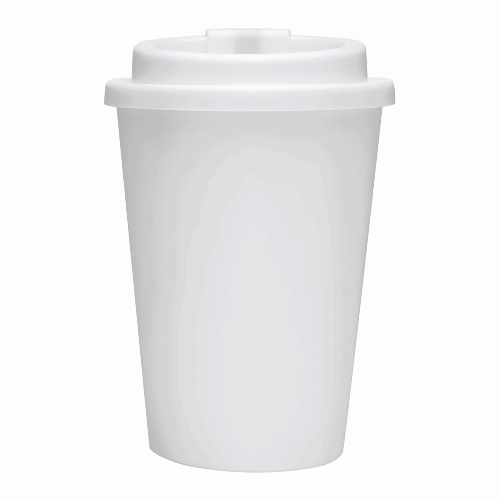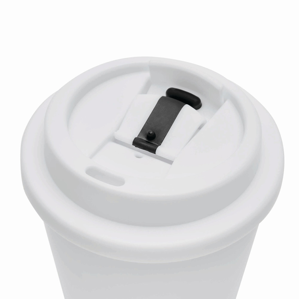 Isolierbecher RE-USE, doppelwandig: aus Kunststoff, Deckel mit sicherem Schraubverschluss, Silikon-Dichtring und integrierter Trinköffnung zum Aufklappen, Füllmenge ca. 300 ml, hält ca. 2 Stunden warm und bis zu 4 Stunden kalt