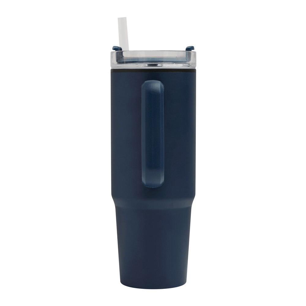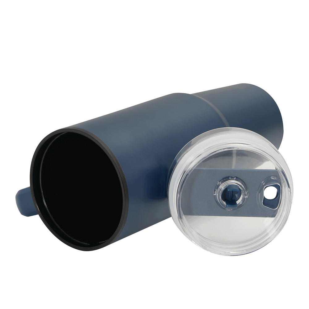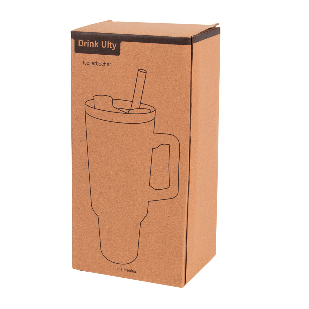 Trinkbecher DRINK ULTY, doppelwandig: innen aus Kunststoff und außen aus Edelstahl, mit praktischem Griff, transparenter Kunststoff-Deckel mit sicherem Schraubverschluss, Silikon-Dichtring, Trinköffnung mit Drehverschluss und transparentem Strohhalm, beschichteter Boden für gute Oberflächenhaftung, Füllmenge ca. 900 ml, hält ca. 2 Stunden warm und bis zu 4 Stunden kalt, in Box