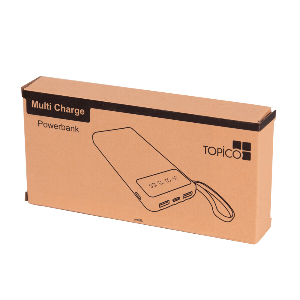 Powerbank MULTI CHARGE: geeignet für Smartphones und USB-betriebene Geräte, inkl. 4 integrierter Ladekabel auf der Rückseite (USB Typ C, Micro-USB, Lightning®, USB Typ A), mit Ladestandanzeige (25 / 50 / 75 / 100 %), Ein- und Ausschalter, je 1 USB Typ C und Micro-USB Eingang und 2 USB Typ A Ausgänge, Eingangsleistung: 5V/2A, Ausgangsleistung: 5V/2A (max.), Kapazität: 10.000 mAh, leistungsstarker Lithium-Akku, mit ausziehbarem Smartphone-Halter, in Box