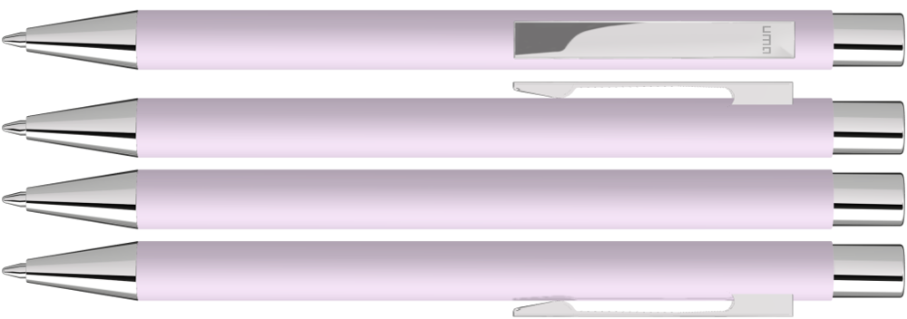 Metall-Druckkugelschreiber mit Softtouch-Gehäuse, Metallclip, Metallspitze und Drücker silber glänzend.