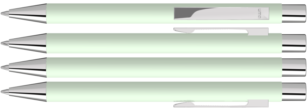 Metall-Druckkugelschreiber mit Softtouch-Gehäuse, Metallclip, Metallspitze und Drücker silber glänzend.