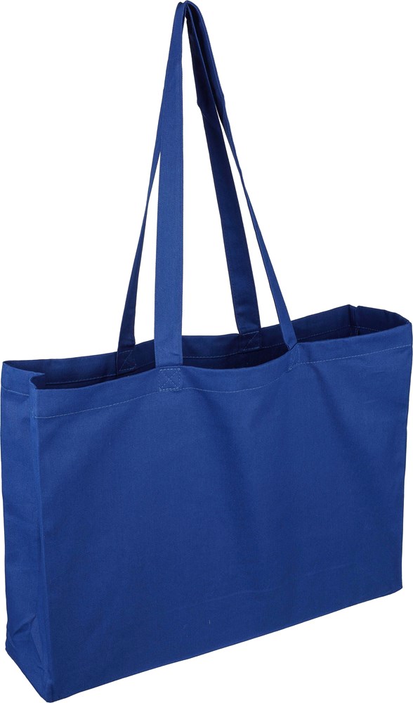 Einkaufstasche Baumwolle (220 g/m2) mit 10 cm Seitenfalte. Gefärbte Baumwolle. Maximales Tragegewicht: ca. 8 kg. Dieses Produkt ist OEKO-TEX® STANDARD 100 zertifiziert.
