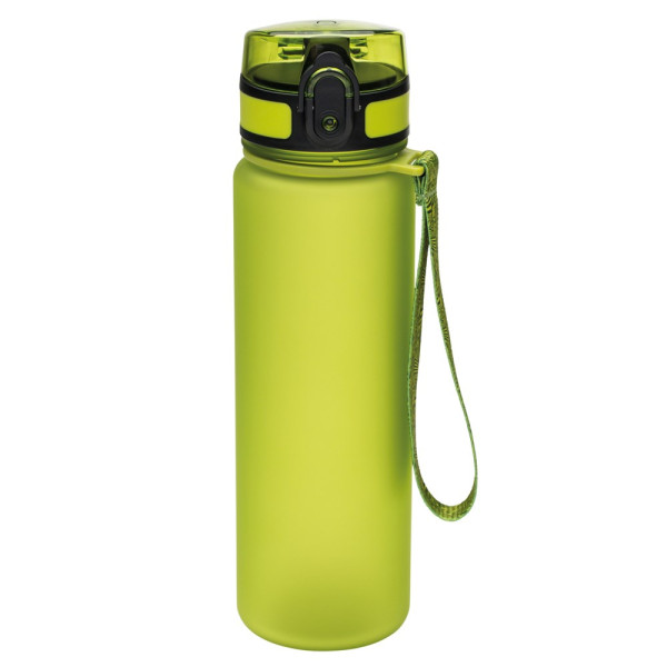 Die Sporttrinkflasche aus Tritan hat einen Sportverschluss zum einhändigen Öffnen, eine Trageschlaufe, ist sehr strapazierfähig und fasst insgesamt 500 ml.