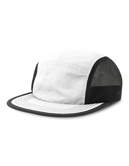 Frontelemente und Schirm: 100% recyceltes Nylon | Seite und Rückseite: 100% recycelter Polyester | Flacher Schirm | Dry-Tech-Schweißband | Wasserabweisend – PFC-frei | Recyceltes Polyester-Netzgewebe | Platzsparendes Design | Weicher Mützenschirm
