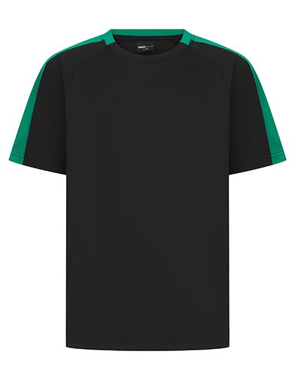 Single-Jersey | Material mit feuchtigkeitsregulierender Oberfläche | 2-teiliger Kontrastkragen | Crewneck | Raglan-Ärmel | Seitliche Kontrasteinsätze aus dem gleichen Stoff am Ärmel | Abreißetikett