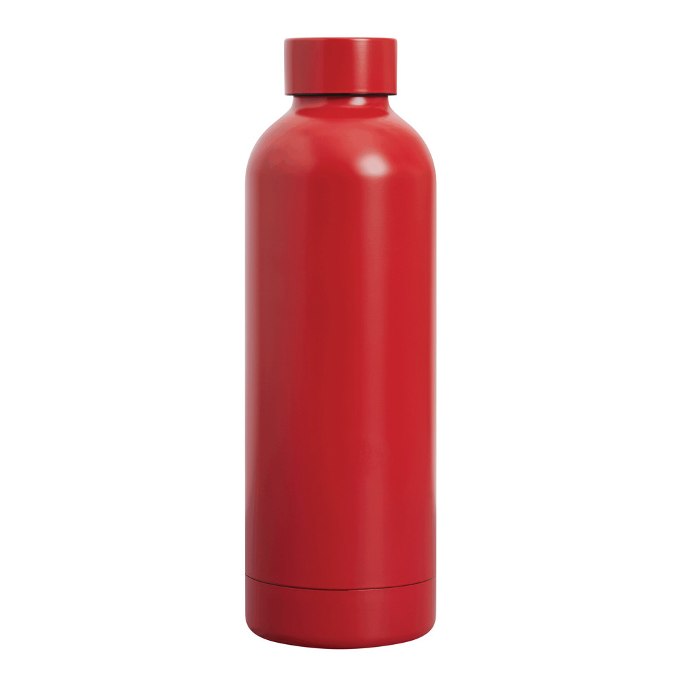 Vakuum-Isolierflasche GET WARM, doppelwandig: innen und außen aus Edelstahl, farbig passender Kunststoff-Deckel mit sicherem Schraubverschluss und Silikon-Dichtring, Füllmenge ca. 500 ml, hält ca. 8 Stunden warm und bis zu 12 Stunden kalt, in Box