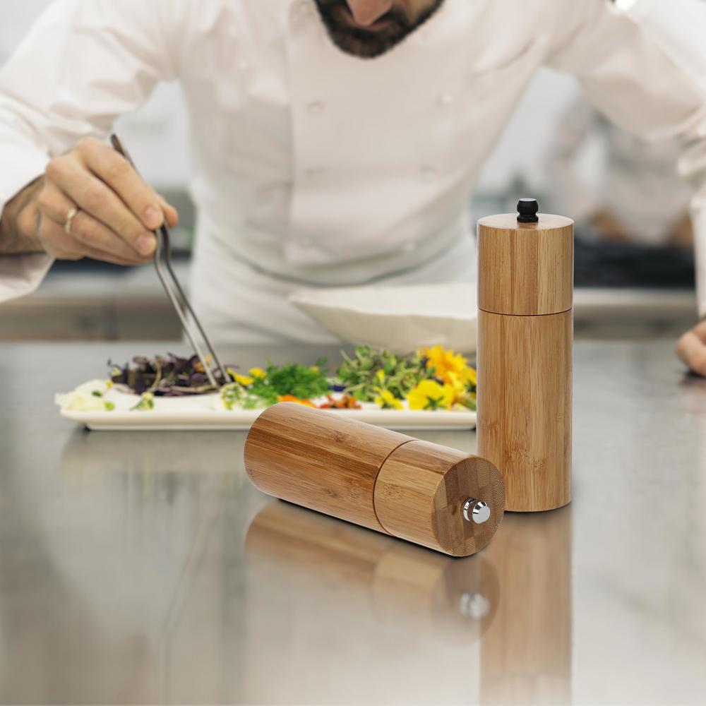 Tauchen Sie ein in eine Welt der Geschmackserlebnisse mit unserem Salz- und Pfeffermühlen-Set. Die Mühlen-Körper sind aus nachhaltigem Bambus und passen damit perfekt in jede Küche. Das hochwertige Mahlwerk aus Keramik steht für Langlebigkeit und auch die Metallachse sorgt für Stabilität. Eine Besonderheit ist die anpassbare Körnung - perfekte Würzung für jedes Gericht!