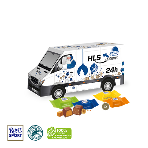 3D Präsent "Transporter" mit Ritter SPORT Schokowürfel