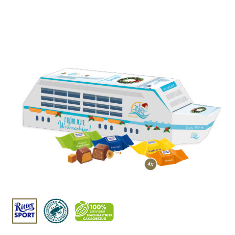 3D Präsent "Schiff" mit Ritter SPORT Schokowürfel