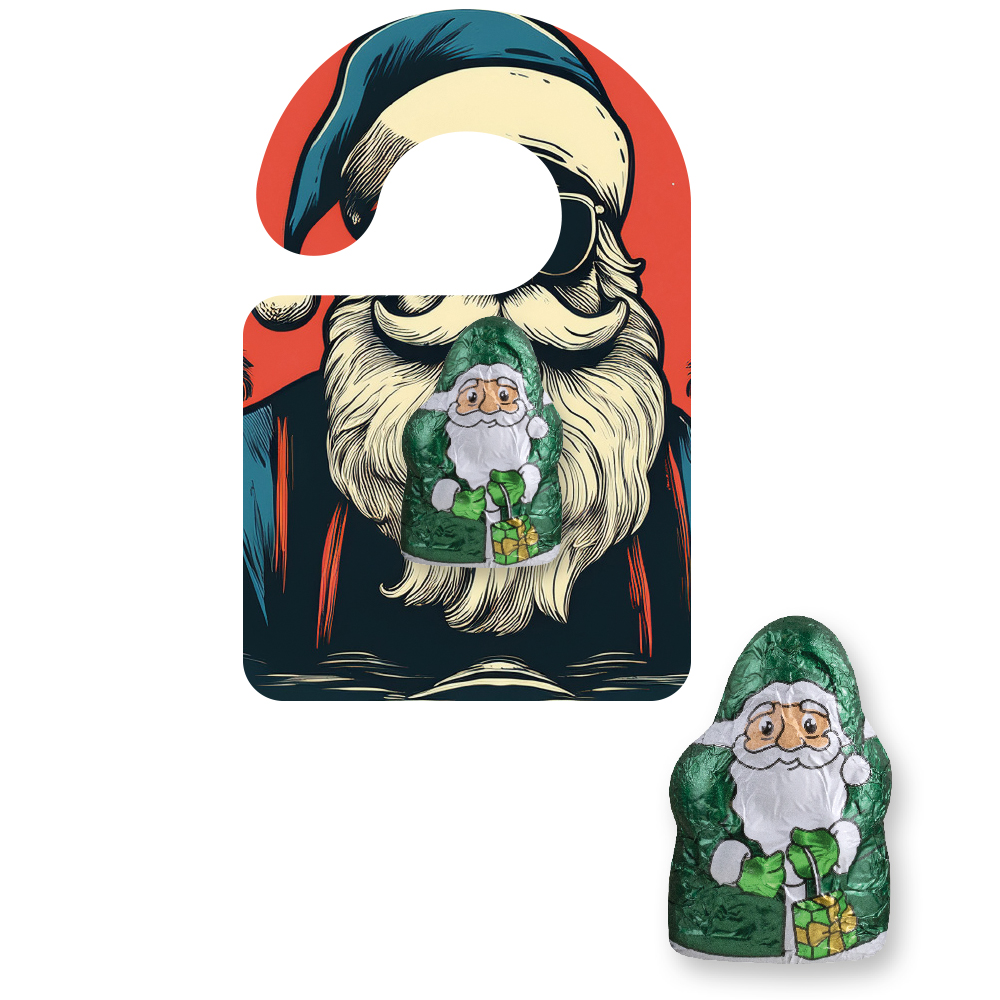 Mini Schoko-Weihnachtsmänner vegan, ca. 7g, Flyer Mini Hänger