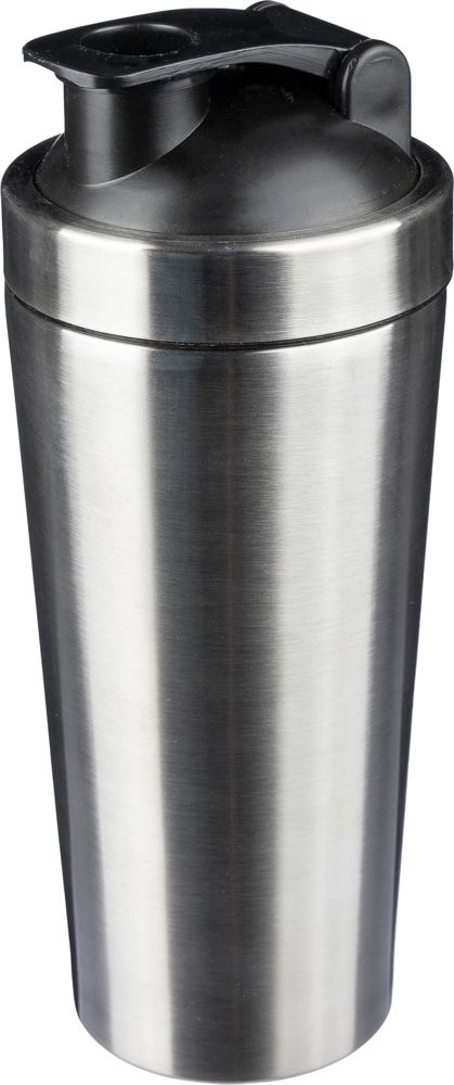 Sport-Trinkflasche aus recyceltem Edelstahl (304), einwandig, mit einem Fassungsvermögen von 750 ml. Sie verfügt über einen PP-Schraubdeckel und eine Metallkugel zum Mixen. Auf der Vorderseite befindet sich ein lasergraviertes, Recycling-Logo. Die Flasche ist einzeln in einer Kraftpapierbox verpackt.