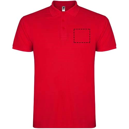 Kurzärmeliges Poloshirt für Kinder. Verstärkte und verdeckte Nähte am Innenkragen. 1x1 Rippstrickbündchen an Ärmeln und Kragen. Seitennähte. 3-Knopfleiste und Seitenschlitze. Optionale Tasche. Herausnehmbares Etikett. Das Modell ist 124 cm groß und trägt Größe 5/6.