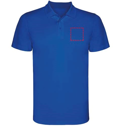 Kurzärmeliges Funktions-Poloshirt. Gestrickter Kragen mit 3-Knopfleiste. Atmungsaktives, leicht zu waschendes und zu trocknendes Material. Herausnehmbares Etikett. Technisches Gewebe. Atmungsaktiver Stoff.