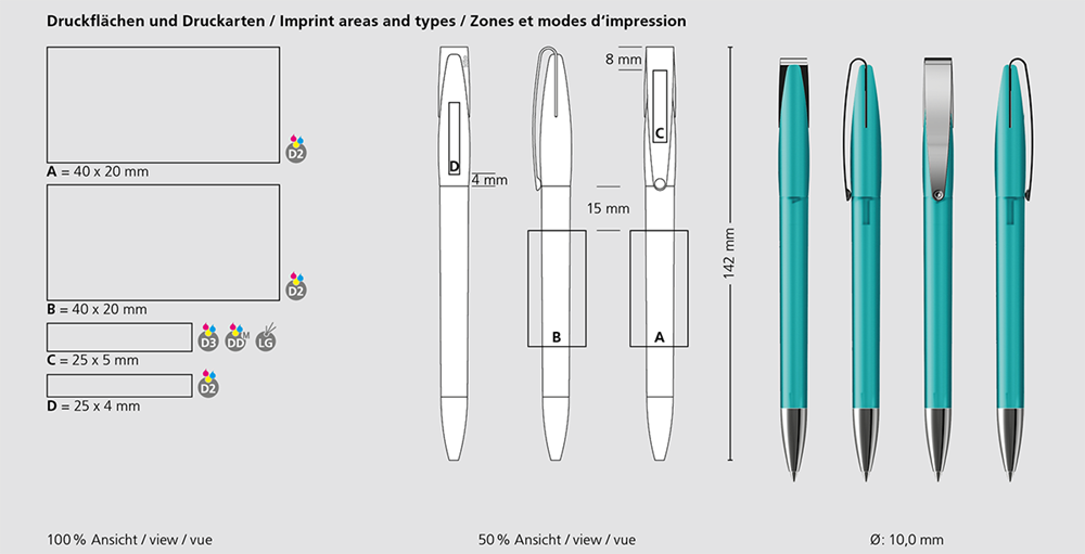 Der Cobra softfrost MMn ist ein Drehkugelschreiber. Materialien und Oberflächen: Spitze: Messing vernickelt. Schaft und Oberteil: Kunststoff (M-ABS) transparent, gummierte Softfrost-Oberfläche. Klipp: Federstahl vernickelt. Minenröhrchen: Recyceltes Polypropylen (rPP). Standardfarben: Schaft und Oberteil: aus 12 Farben kombinierbar. Sonderfarben: ab 5.000 Stück, ab 25.000 Stück ohne PMS-Zuschlag. Standardmine: Silktech L (3.000 m), blau oder schwarz, Mine optional: Silktech XL, Multifill P, Multi-Gel.