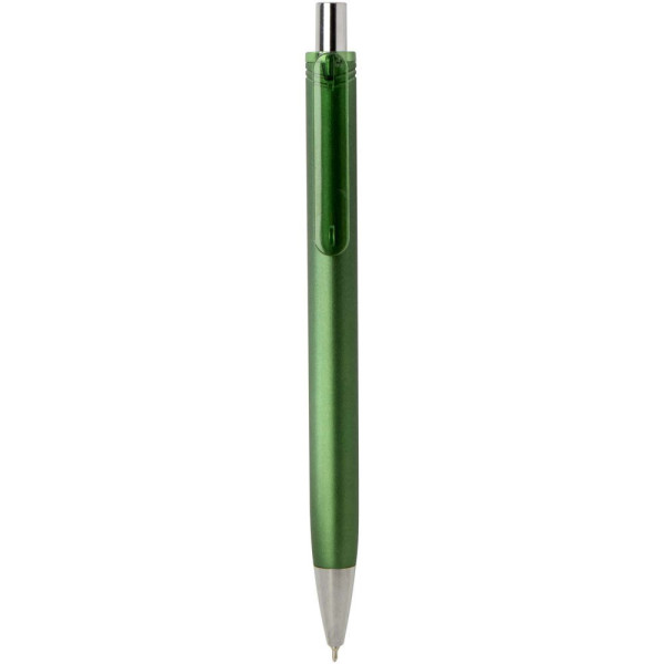 Der Feld Kugelschreiber mit Metallic Finish verbindet Alltagstauglichkeit mit einem eleganten Look. Er besteht aus RCS zertifiziertem recyceltem ABS Kunststoff und verfügt über ein glänzendes Metallic Finish mit polierten Chromakzenten. Sein leichtgängiger Druckmechanismus und die Semi Gel Tintenmine sorgen für ein angenehmes und flüssiges Schreibgefühl. Farbe der Stiftmine: schwarz. Schreiblänge: 500 m. Schreibspitze: 0,7 mm.