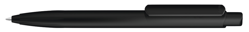 Druckkugelscheiber mit gedeckt mattem Gehäuse, Clip und Drücker aus recyceltem ABS-Kunststoff. Eingelassene Griffzone.