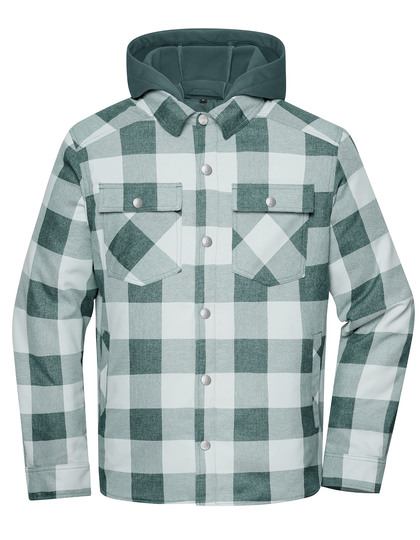 Trendiges, wärmendes Arbeitshemd - komplett leicht wattiert | Kapuze aus elastischem Fleece (Außenseite glatt, Innenseite angeraut) | Konfektionierter Kragen | Durchgehende Knopfleiste mit Druckknöpfen | 2 aufgesetzte Brusttachen mit Druckknöpfen | 1 Brustinnentasche mit Reißverschluss | Ärmelschlitze und verstellbare Manschetten mit Druckknöpfen | Reißverschluss zur Rückenveredelung | Reißverschlüsse: YKK