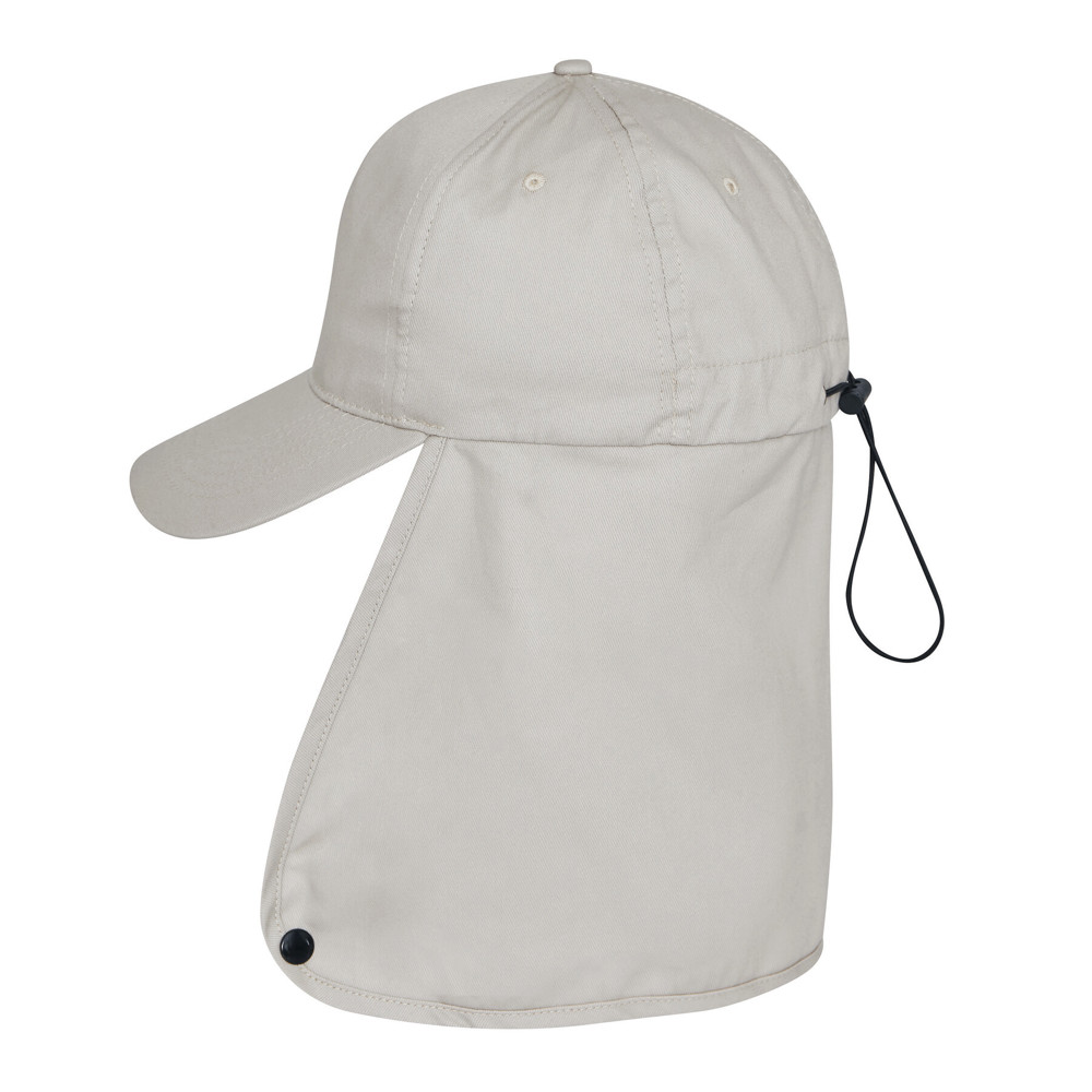 5-Panel-Baseball-Cap SOLGARD: verstärktes Frontsegment, 4 gestickte Luftlöcher, Knopf, Zuziehband mit Stopper zum Anpassen an die Kopfgröße, langer Nackenschutz mit Druckknopfverschluss — ideal für Outdooraktivitäten und zum Schutz vor Sonnenbrand, mit UPF 50+ Sonnenschutz