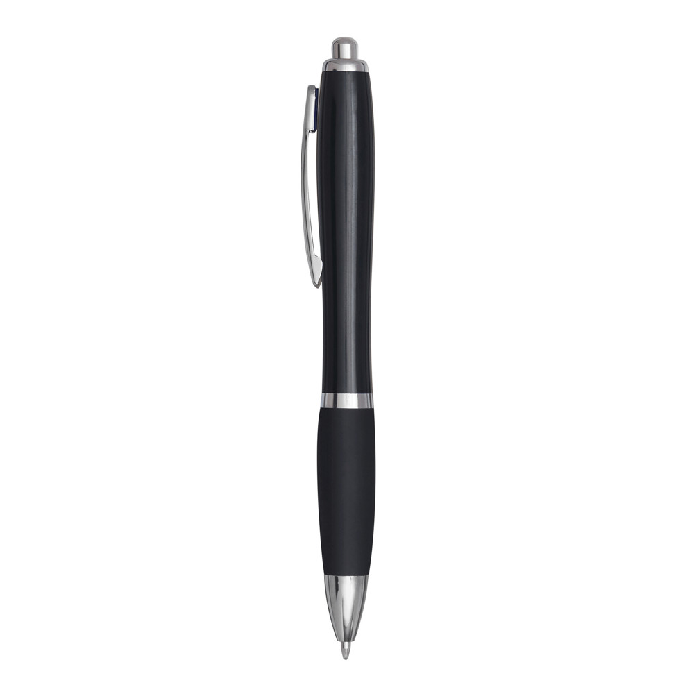 Kugelschreiber SWAYRABS: mit Schaft in taillierter Form aus recyceltem Kunststoff, gummierter Griffzone, Druckmechanismus, Großraummine, blauschreibend