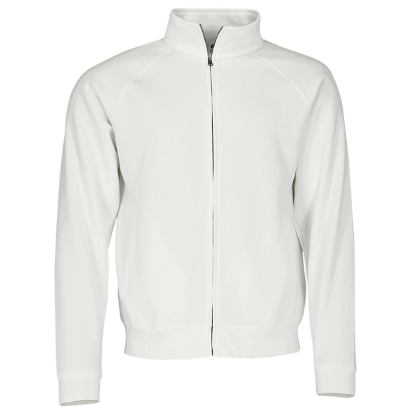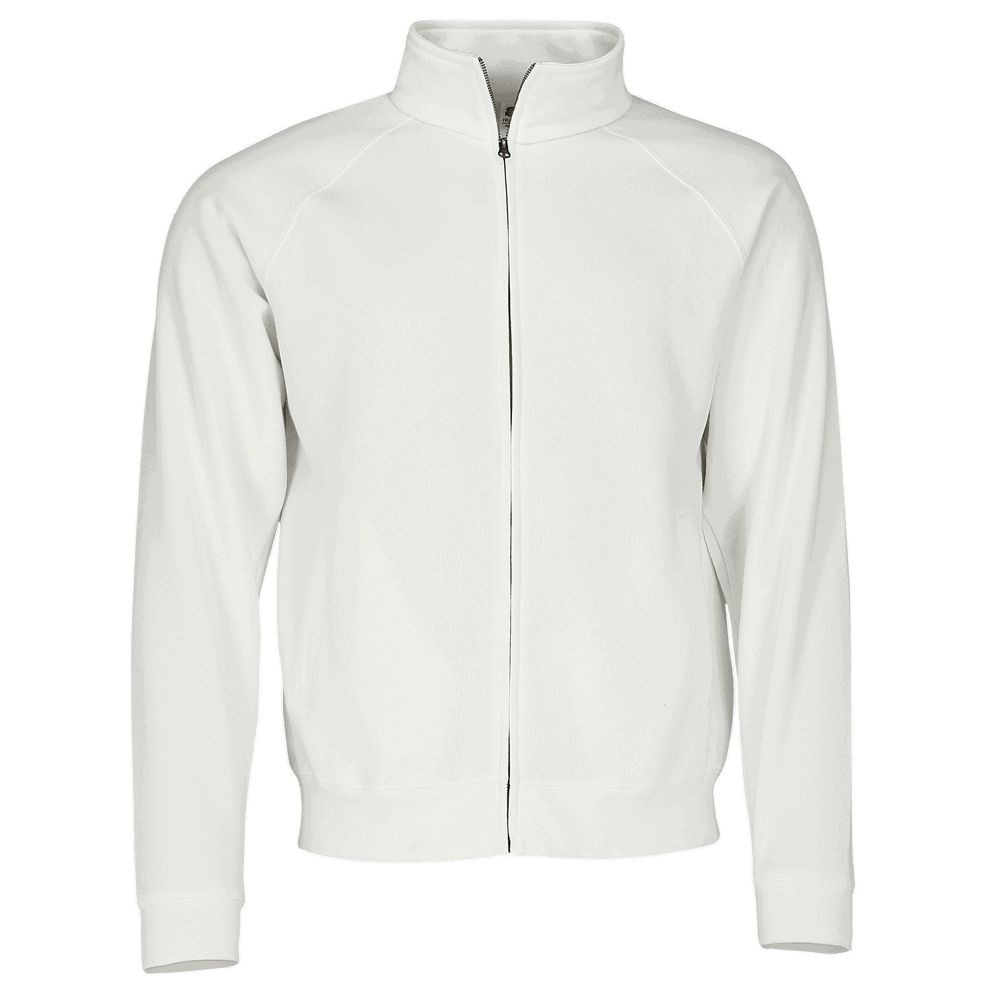 Fruit of the Loom Premium-Sweatjacke mit zwei Vordertaschen und einem verdecktern Metall-Reißverschluss. Stehkragen mit Single-Jersey-Nackenband und Bündchen aus Baumwoll/Elastan-Ripp sorgen für optimalen Tragekomfort.