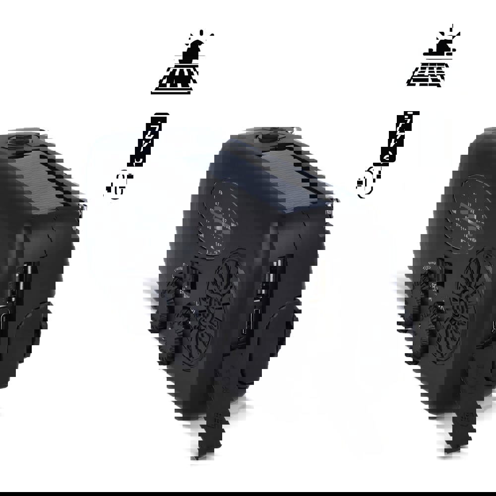 SafeSound Notfallradio ist ein kompaktes, tragbares All-in-One-Gerät: Radio, Taschenlampe und Powerbank. Es lädt sich über Solarenergie, Handkurbel oder das mitgelieferte USB-C-Kabel auf. Hören Sie AM- und FM-Sender, laden Sie Ihr Handy mit 1800 mAh Akku auf oder nutzen Sie die integrierte Taschenlampe. Mit 15 Stunden Batterielaufzeit ideal für Notfälle und Reisen.