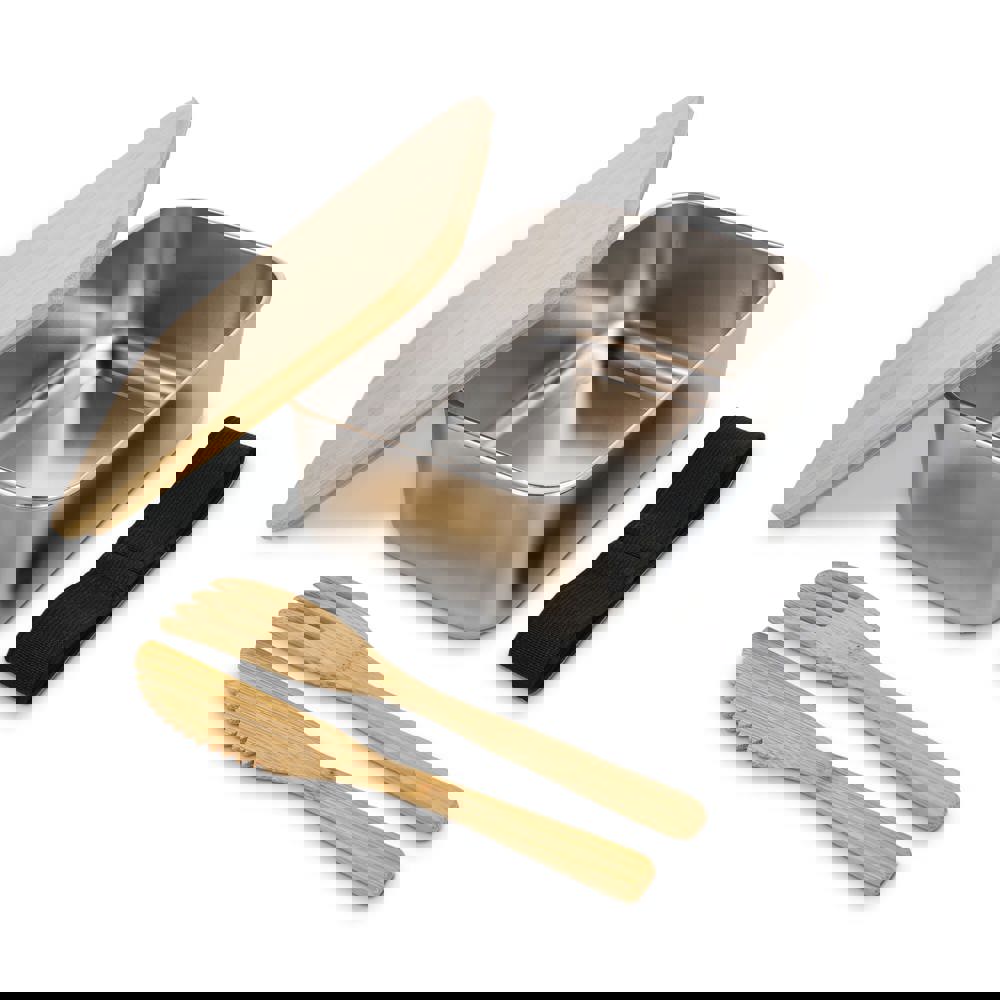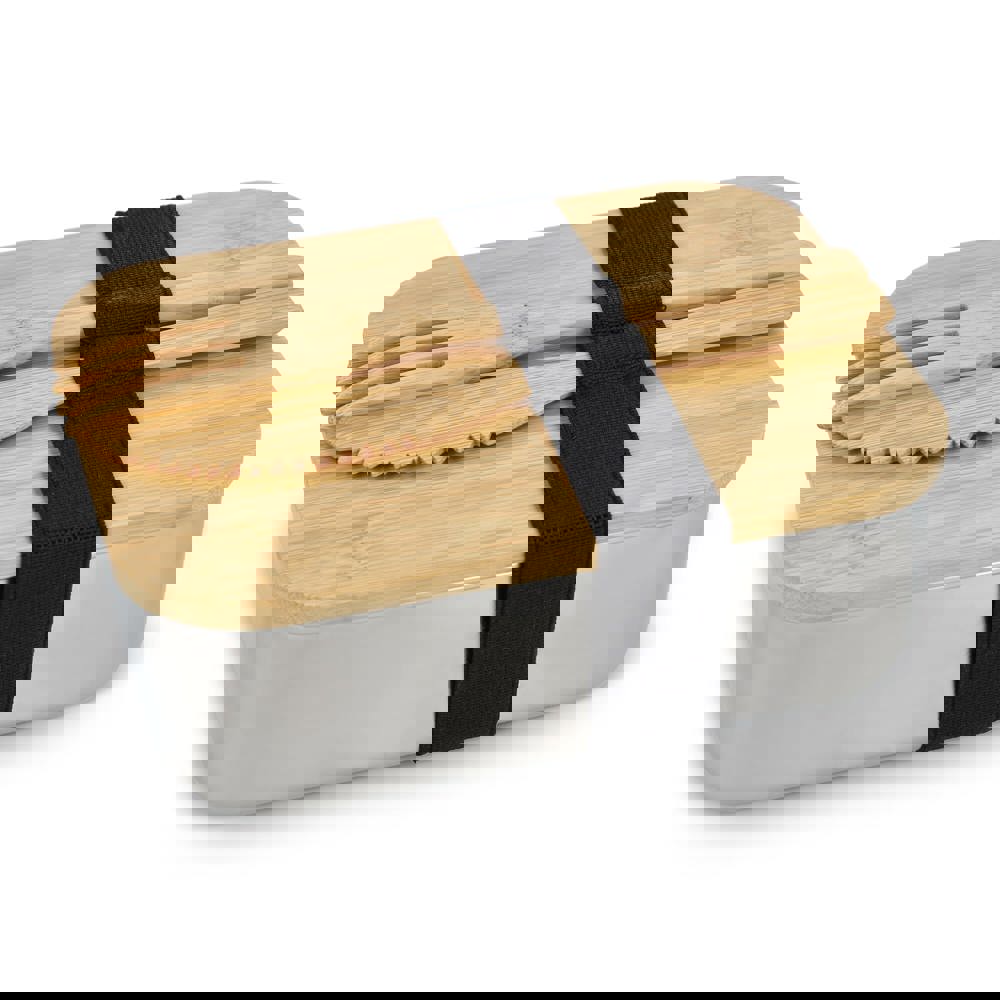 Edelstahl-Brotdose mit Bambusdeckel
