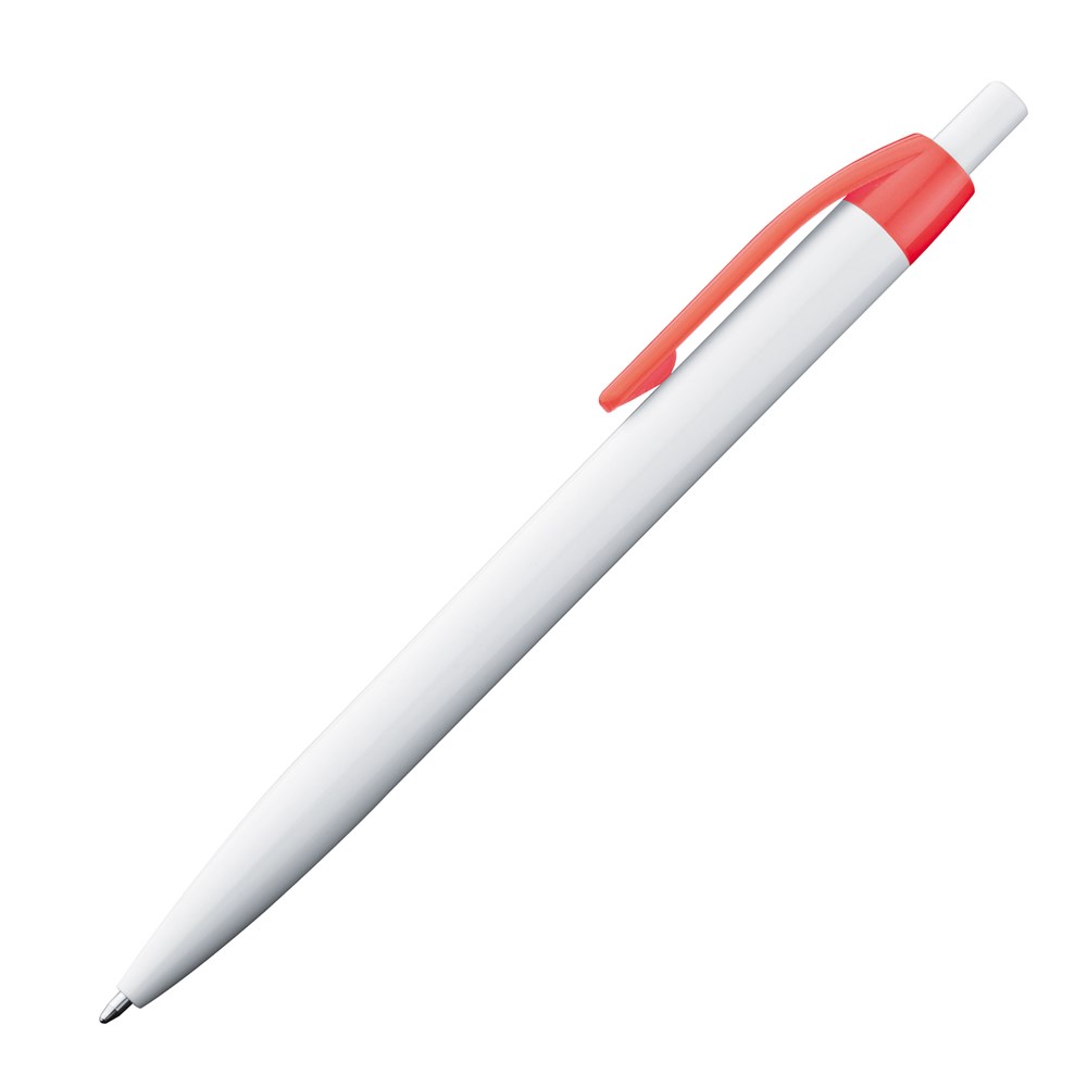 Leuchtende Farben des Clips: Der farbige Clip hebt sich auffällig vom weißen Schaft ab und verleiht dem Kugelschreiber ein trendiges Aussehen.