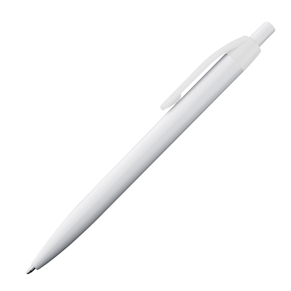 Ein trendiger Druckkugelschreiber mit einer blau schreibenden Mine, einem weißen Schaft und leuchtenden Farben des Clips ist ein auffälliges Schreibgerät, das Ihre Werbung auf dem Schaft trägt, um Ihre Marke in den Mittelpunkt zu stellen.