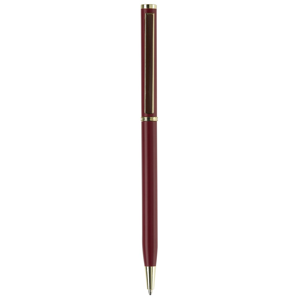 Dünner Metallkugelschreiber. Farbig matt mit goldfarbigen Teilen. Blauschreibende Metallmine. mehr