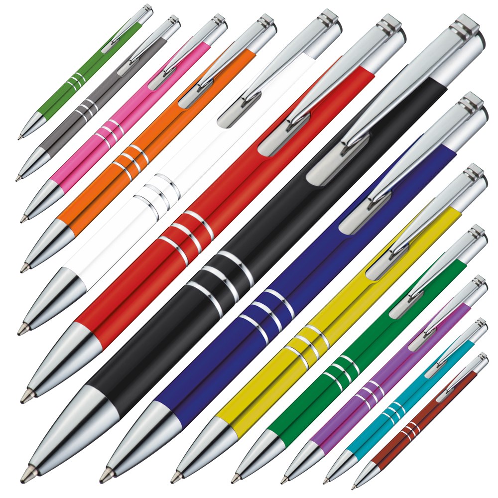 TOP PRICE! Metall Kugelschreiber mit farbiger Metallic-Lackierung und einer blauschreibenden Großraummine. Ihre Werbung lasern wir rechts vom Clip.