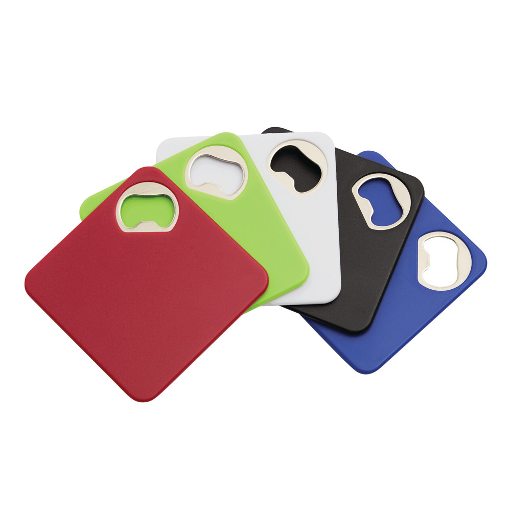 Untersetzer TOGETHER: integrierter Flaschenöffner, Anti-Rutsch-Beschichtung am Boden, mit großer Fläche für eine Werbeanbringung