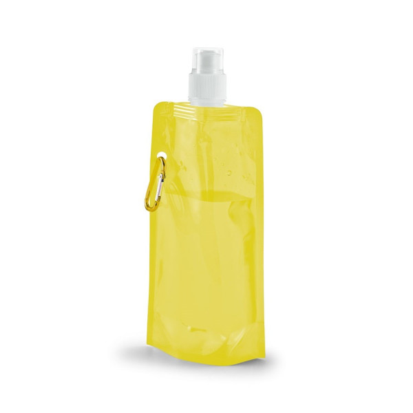 Faltbare Trinkflasche aus PE (460 mL) mit Karabiner, Deckel und Push-Pull System. 120 x 260 x 30 mm