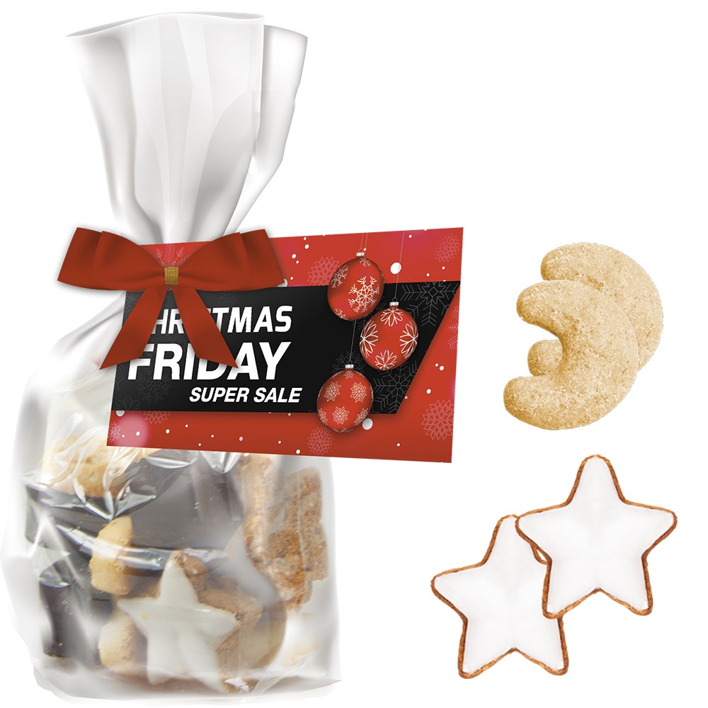Weihnachtsgebäck Mischung, ca. 115g, Express Standbeutel Midi mit Schleife mit Werbekarte