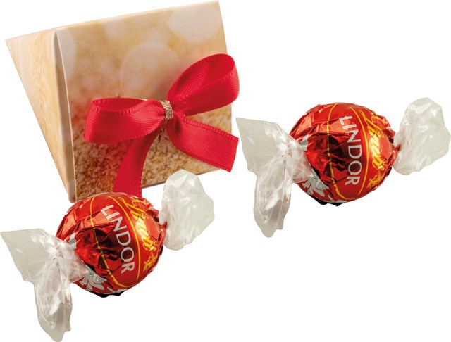 Eine kleine Tüte für Schokoladen-Gourmets. 2 Schoko-Kugeln von Lindt versüßen die Adventszeit. Das Standardmotiv der Spitztüte bietet Platz für Ihren Werbeeindruck. Alternativ, kann, ebenfalls ab 250 Stück, eine individuelle Gestaltung erfolgen. Inhalt: 2 Lindt Schoko-Kugeln (je 12,5 g)