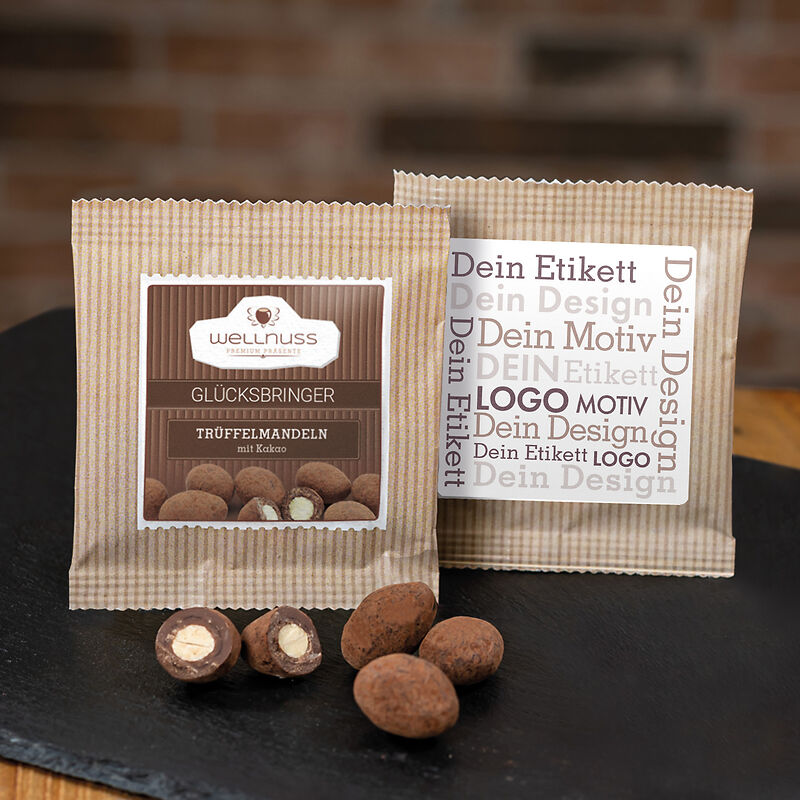 Premium Flowpack - glücksbringer - Trüffelmandeln mit Kakao