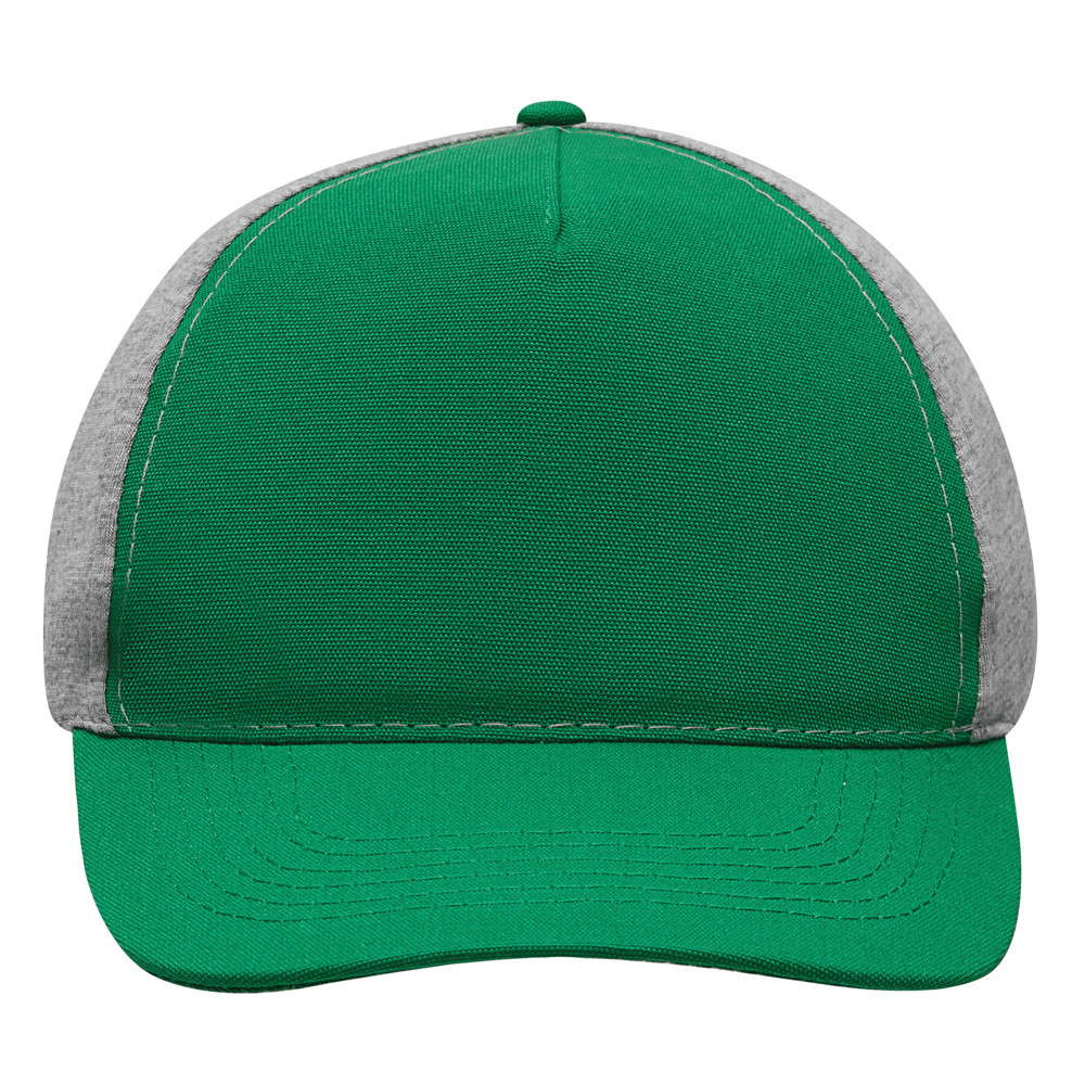 5-Panel-Baseball-Cap UP TO DATE, 2-farbig: verstärktes Frontsegment in Canvas-Optik, übrige Segmente aus Jersey, 4 gestickte Luftlöcher, Knopf, farbig abgesetzter und größenverstellbarer Klettverschluss am Hinterkopf