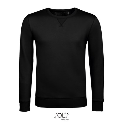 Fleece-Material mit geringer Schrumpfung; 80% Ringspun-Baumwolle / 20% Polyester; angerautes Futter; Außen: 100% Baumwolle | Rundhals mit gesticktem V-Einsatz | 2 x 2 gerippte Ärmelabschlüsse, Kragen und Saum | Eingesetzte Ärmel | Geschnitten und genäht | Halbmondpasse auf der Krageninnenseite | Nackenband | Kein Label