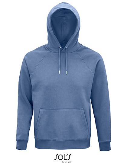 Fleece 280 | 80% Bio-Baumwolle / 20% recycelter Polyester | 3-Faden-Garn | Innen gebürstet | Obermaterial: 100% Baumwolle, Ripp-Stoff: 97% Bio-Baumwolle / 3% Elasthan | Bio-Hoodie | Seitennaht | Überkreuzter Kragen | Kängurutasche | Raglan-Ärmel | Halbmond im Nackenbereich | Jersey-Nackenband | 2 x 2 gerippte Ärmelabschlüsse und Saum | Silberne Ösen und Stopper | Runder Ton-in-Ton-Kordelzug | Kein Label