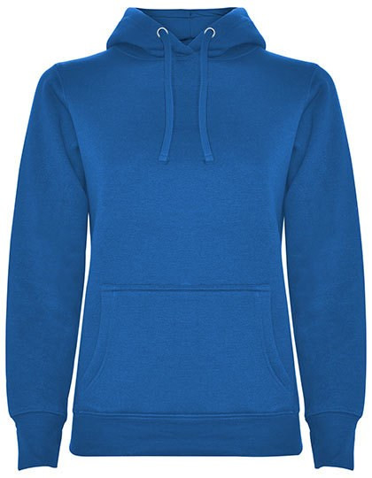Innen angeraut | Tailliert | Kapuze innen (Single Jersey), Kordelzug und Metall-Ösen in Kontrastfarbe | Nackenband mit Fischgrätmuster | Kangorootasche | Ärmelbündchen und Saum mit 1x1 Ripp-Strick und Elasthan | Ärmelbündchen mit Daumenöffnung | Herausreißbares Label